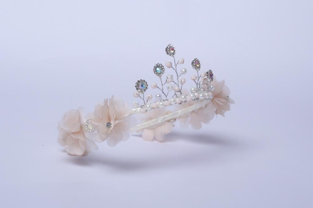 تاج مزين بكريستال وورود بيج