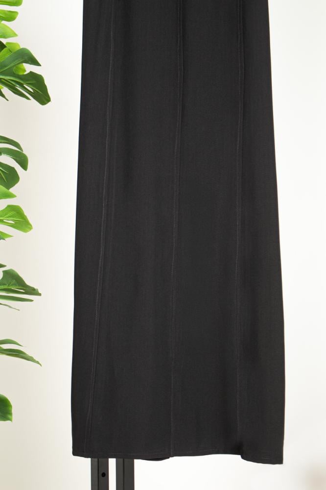 ارتقي بإطلالتك مع أروشي بهذه التنورة السوداء الأنيقة المصممة لتمنحك لمسة من الرقي والبساطة في آنٍ واحد. تتميز بقصّة طويلة وانسيابية تضفي مظهرًا ناعماً وانثويًا، مع خصر مرتفع يمنحك راحة وأناقة طوال اليوم. مصنوعة من قماش ناعم وخفيف يتماشى مع مختلف الفصول، ويمكن تنسيقها بسهولة مع قمصان كلاسيكية أو توبات عصرية.