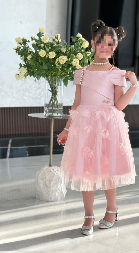 فستان باللون الوردي الناعم يعكس الأنوثة والبراءة مع تفاصيل مدروسة تضيف لمسة راقية لا تُقاوم.