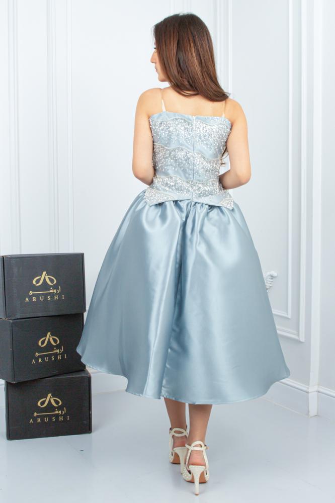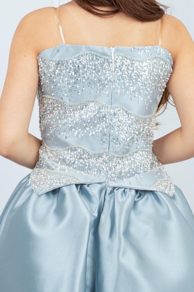 - الجزء العلوي مطرز بخرز فضي متلألئ بشكل مموج أنيق.