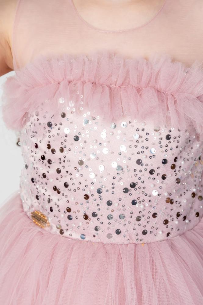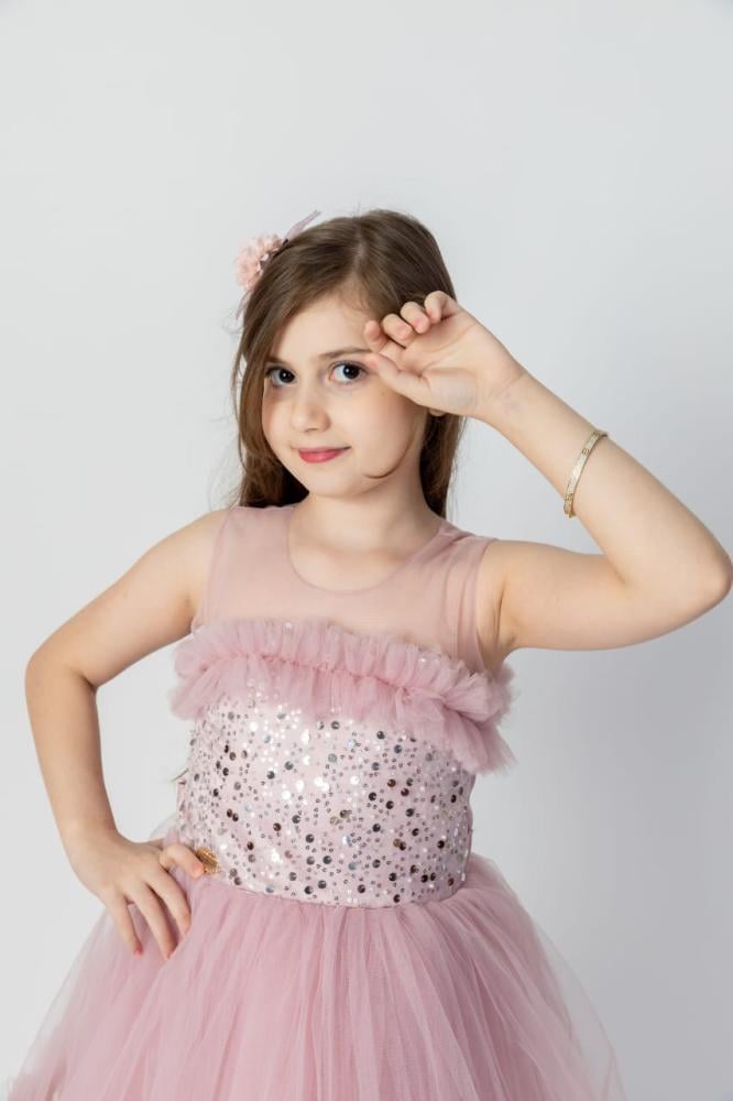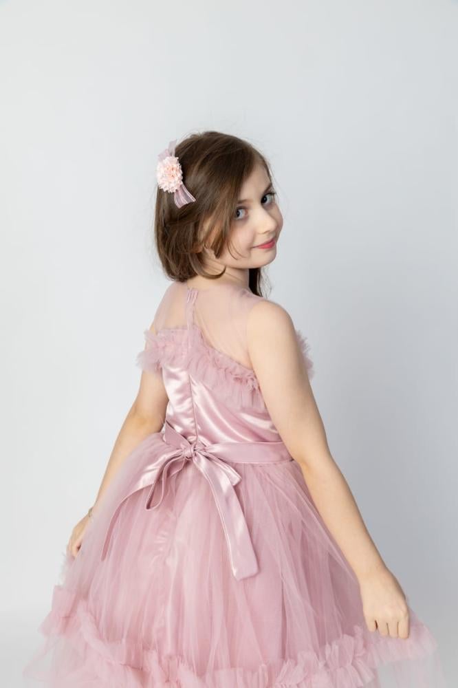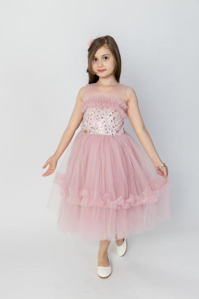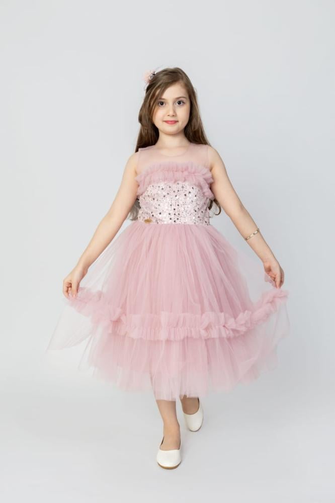 فستان سهره بناتي تل كلوش صدر ترتر كشكش